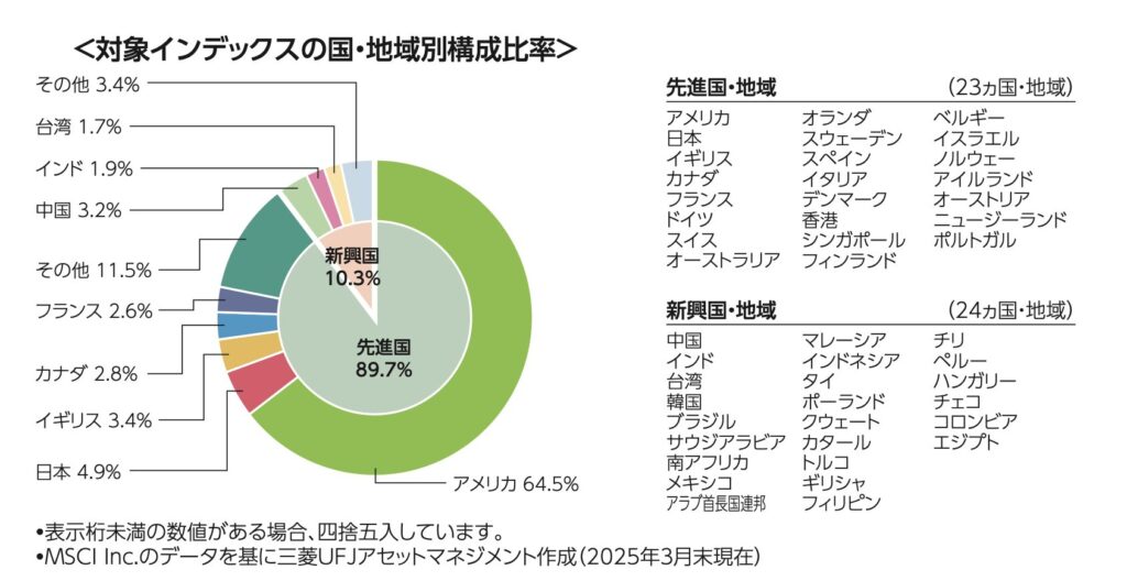 オルカンは、時価総額が大きい国の投資比率を自動で大きくしてくれる仕組みになっています。(時価総額加重平均という)
