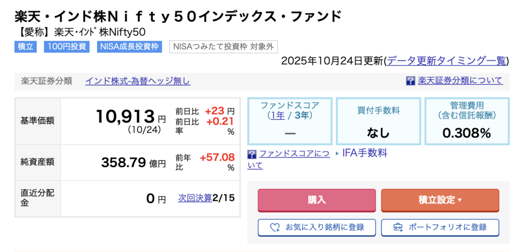 投資のメインは全世界株式ファンドや米国株式ファンド等にして、インド株の成長に期待する人は投資額全体の5%以内など範囲を決め、トッピング的にインド株(楽天・インド株Nifty50インデックス・ファンドなど)に投資していくのが良いでしょう。